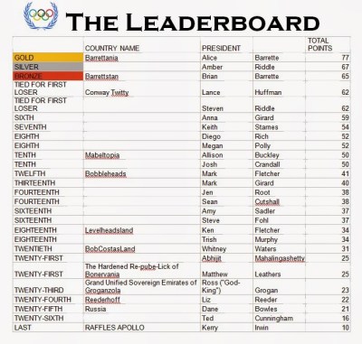 1 thought on “The Standings: Tuesday, February 18 (Day Eleven)