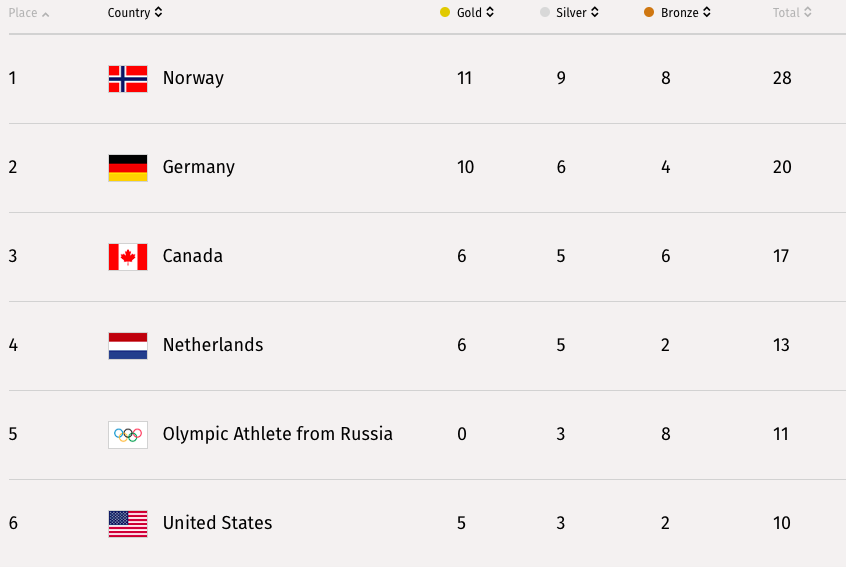Medal Count Update Posted on February 20, 2018 by annagirardfletchergmailcom Make America Great Again? Share this: Click to share on X (Opens in new window) X Click to share on Facebook (Opens in new window) Facebook Like Loading...
