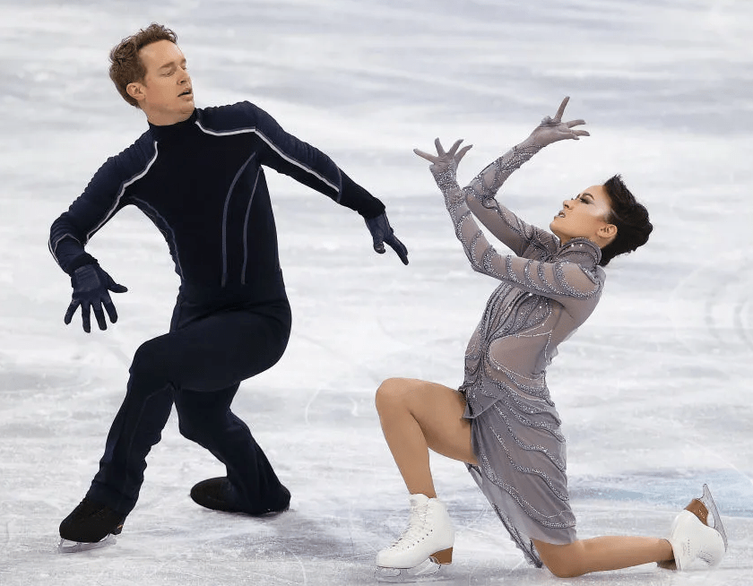 It was Valentine’s Day at the Olympics for the many Olympic athlete couples, such as Madison Chock and Evan Bates, shown here during their free dance where they are obviously portraying an alien and an astronaut.